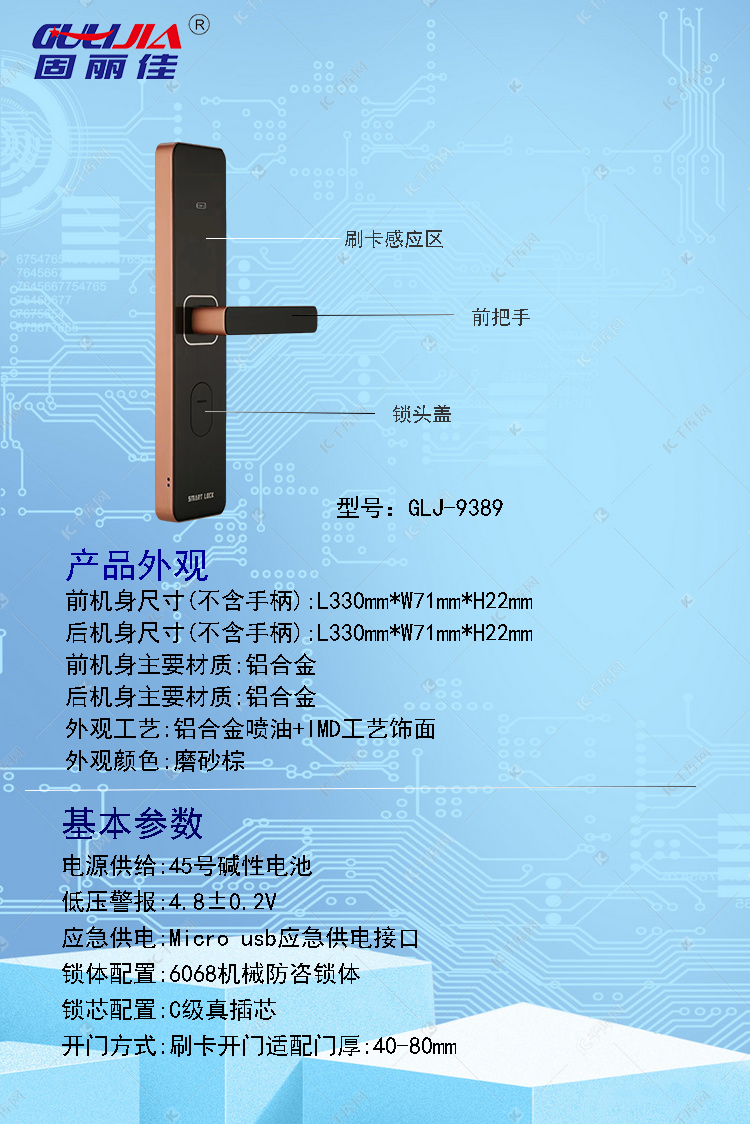 禧之萊酒店安裝了固麗佳GLJ-9389紅古藍(lán)牙密碼公寓鎖,廣州固麗電子科技藍(lán)牙公寓密碼鎖采用無(wú)線通訊技術(shù)不需布線可實(shí)現(xiàn)近距離藍(lán)牙開(kāi)鎖,遠(yuǎn)程發(fā)送密碼,NFC手機(jī)端藍(lán)牙發(fā)卡開(kāi)門和近距離藍(lán)牙發(fā)卡,可電腦端手機(jī)端同步在線,功能強(qiáng)大。